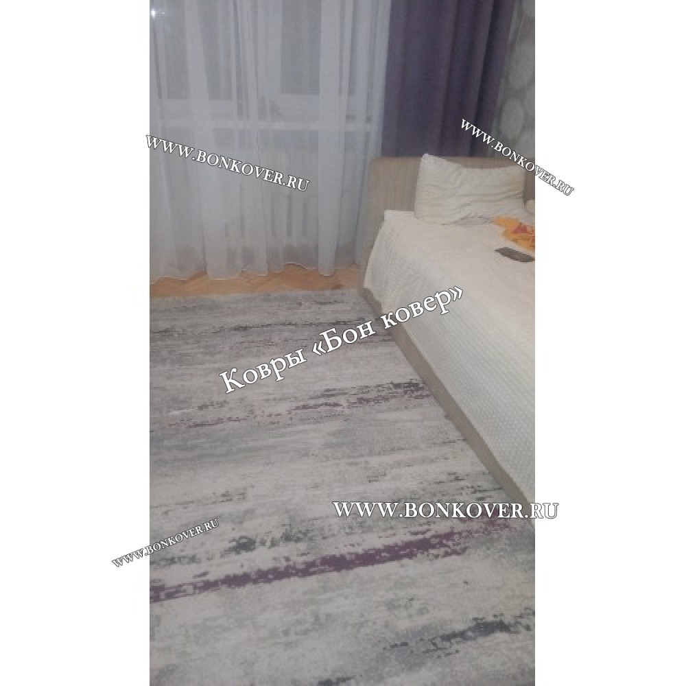 Изящный Абстрактный Турецкий Ковер Серый С Фиолетовым Арт 30039 наполняет интерьер комнаты теплом и уютом, гармонично сочетает в себе изящество и красоту. Он соткан из износостойких материалов, комфортный и долговечный.