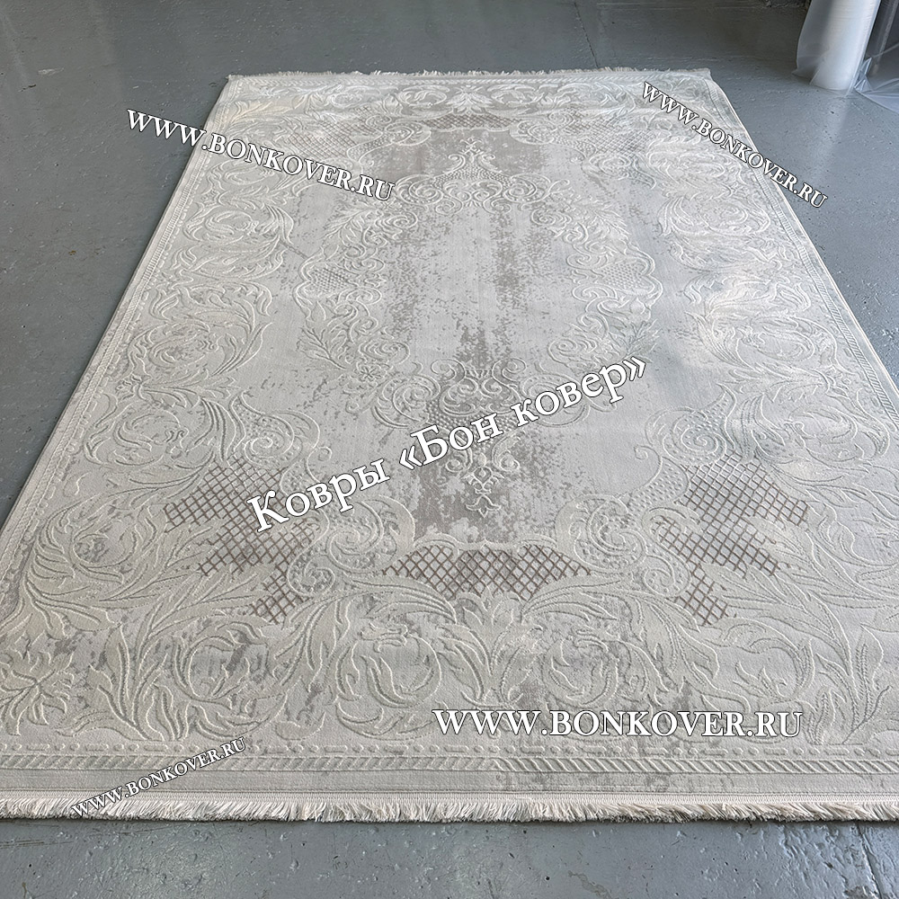 Ковер Турция Для Гостиной Дизайн 96 Белый со Светло-серым станет великолепным преображением жилого помещения, подчеркивая высокий статус владельца.